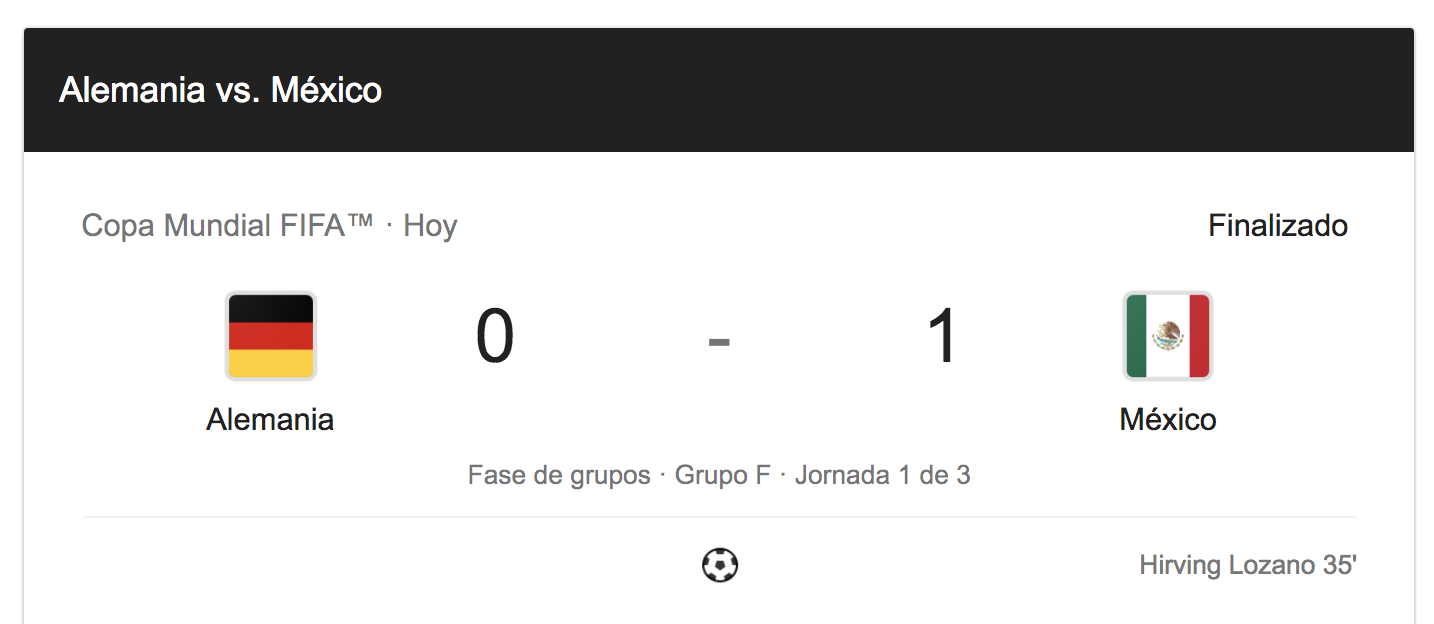 Por el grupo F. México dio el primer batacazo ganándole 1 a 0 a Alemania con gol de Lozano. Un resultado que se festejó en Argentina.