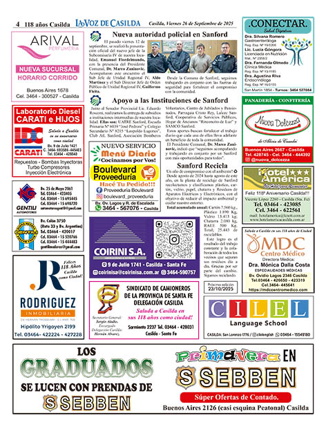– Viernes 3, Sabádo 4 y Domingo 5/10: Rally Casilda, que regresa con tres días de adrenalina y competencia.