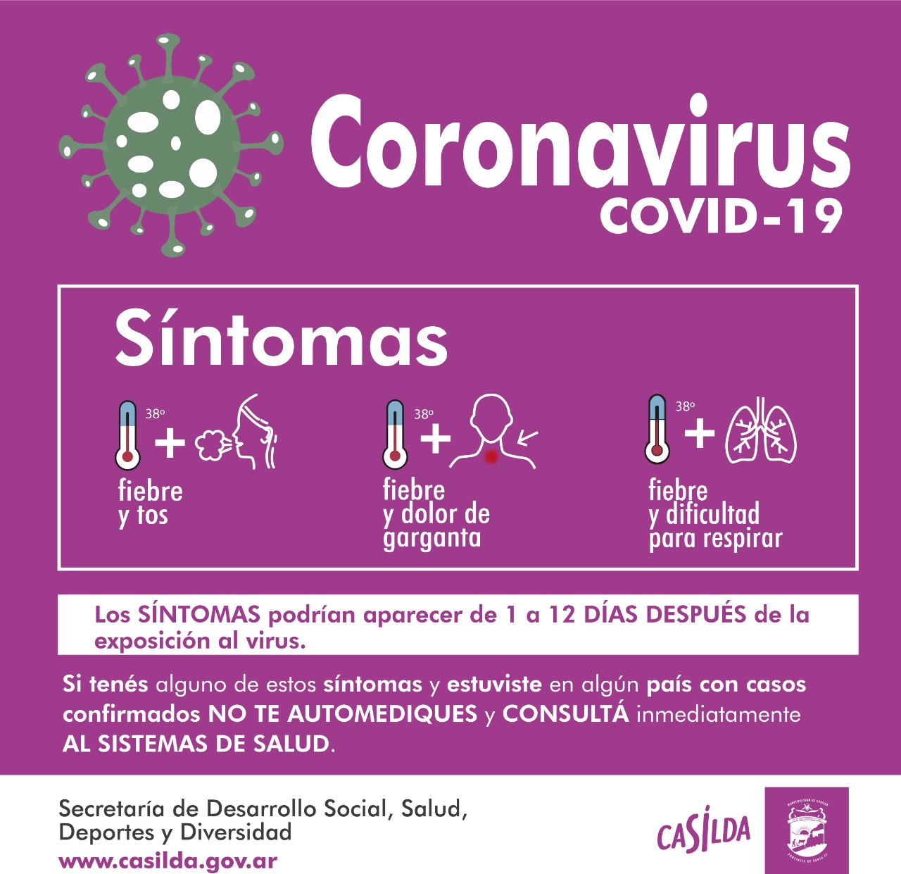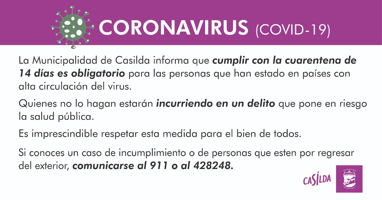 La subsecretaría de Salud de la Municipalidad de Casilda da a conocer a la población una serie de acciones a considerar y llevar adelante para evitar la posible propagación del COVID-19, popularmente llamado Coronavirus. ¿Cuál es el objetivo de esta prevención? Están destinadas a orientar sobre medidas de prevención en lugares con alto tránsito de personas como