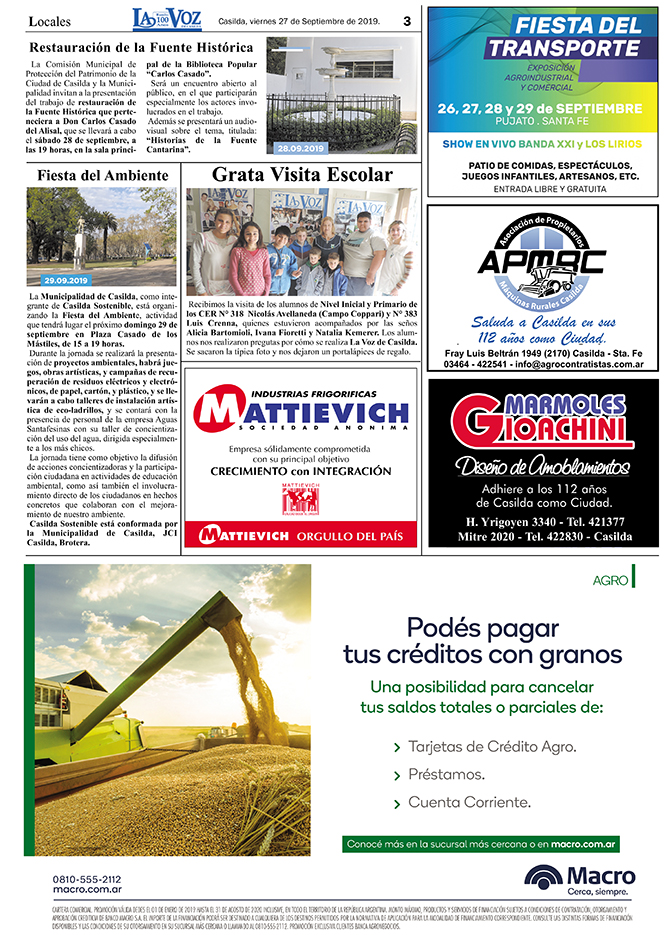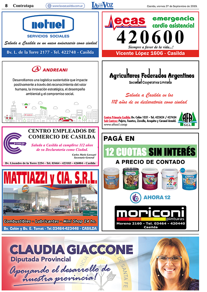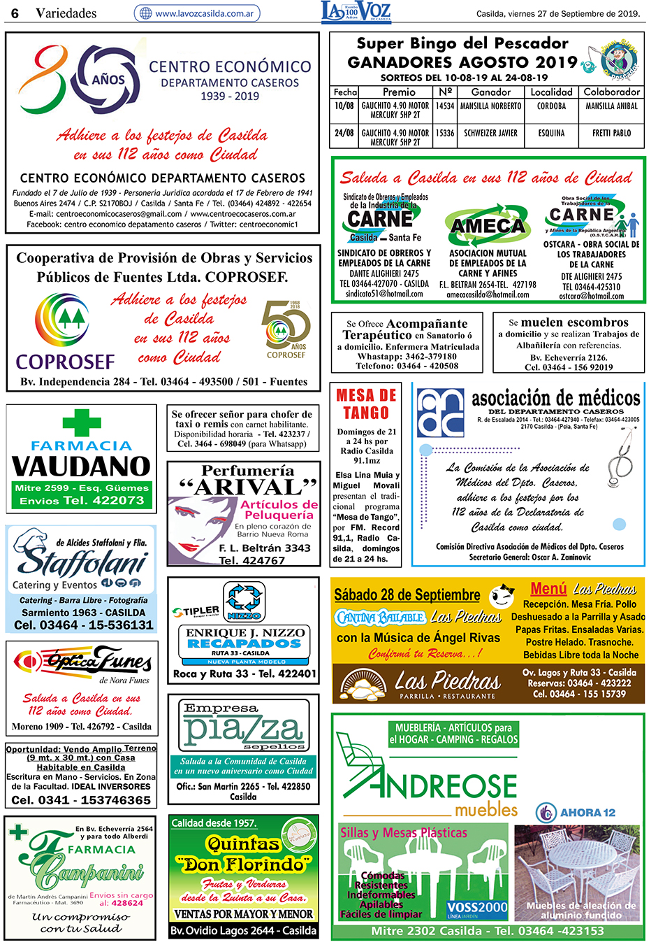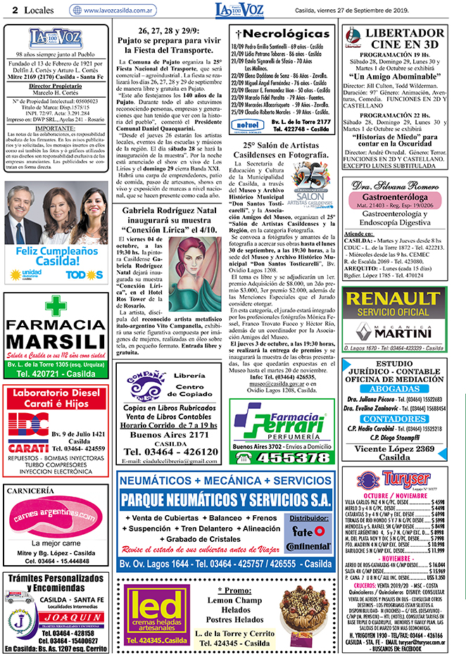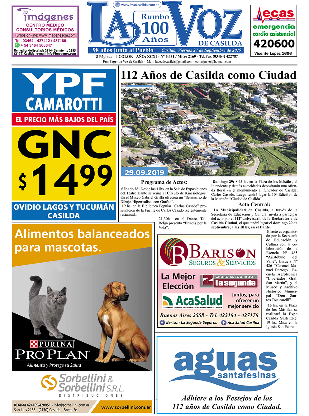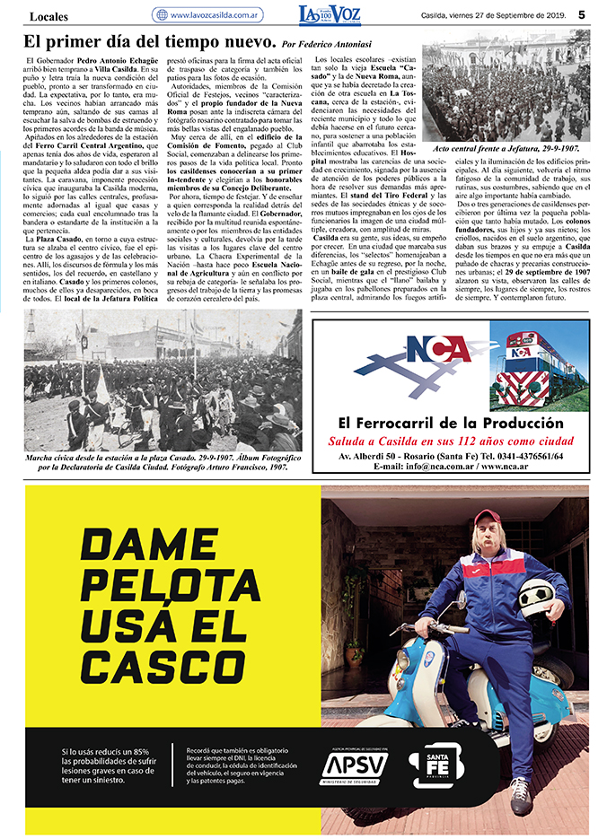 Edición 27/09/2019. Especial Casilda 112 años de Ciudad