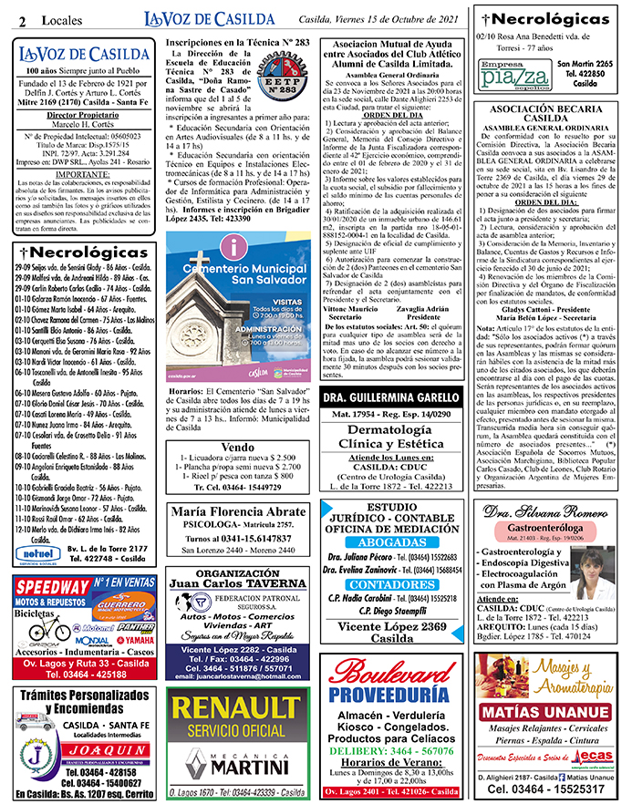 Periódico Semanal Regional. Fundado el 13 de Febrero de 1921 por Delfín José Cortés y Lorenzo Arturo Cortés.
