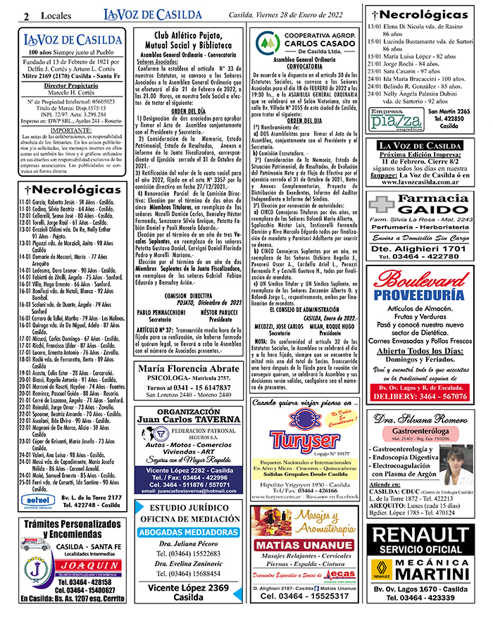 Edición Impresa 28/01/2022 – La Voz de Casilda