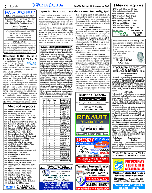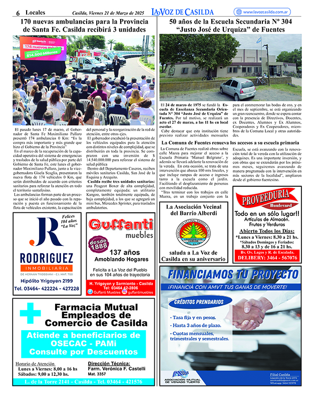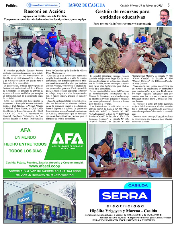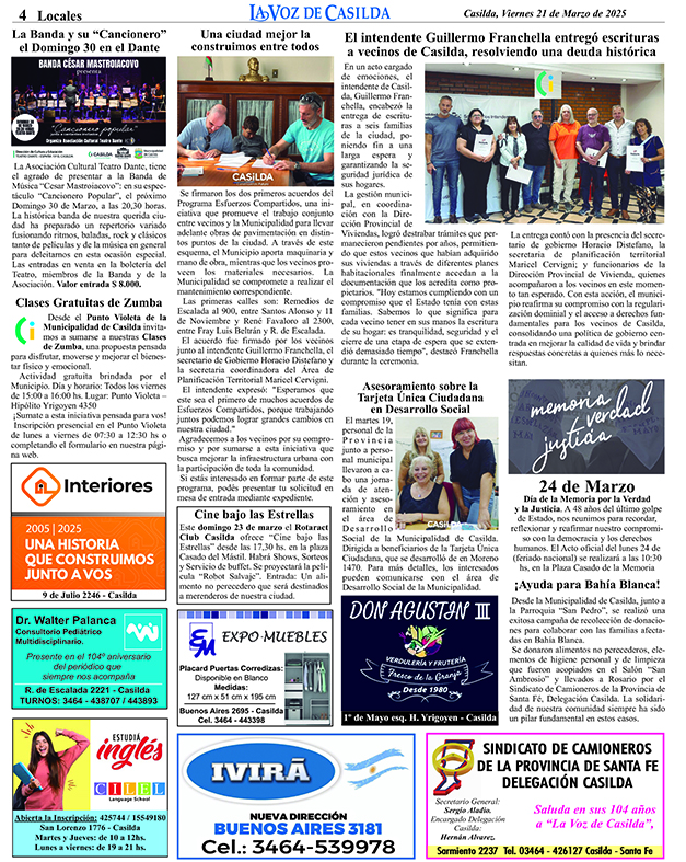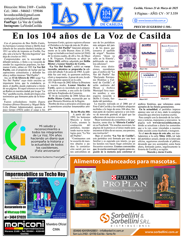 Edición Impresa de La Voz de Casilda: 21 Marzo 2025 – 104 años