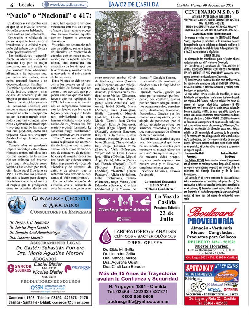 Edición Impresa «La Voz de Casilda» 09/072021