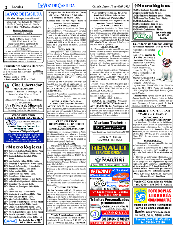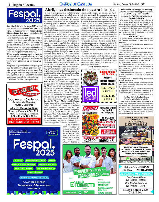 Edición Impresa: La Voz de Casilda – 10 Abril 2025