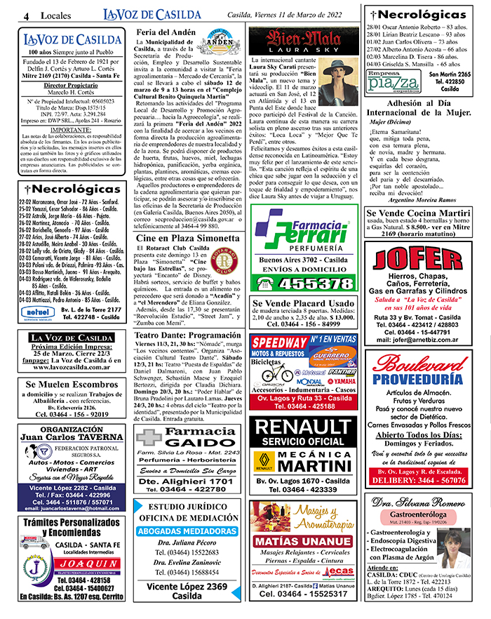 Edición Impresa «La Voz de Casilda» – 11/03/2022 – 101 años