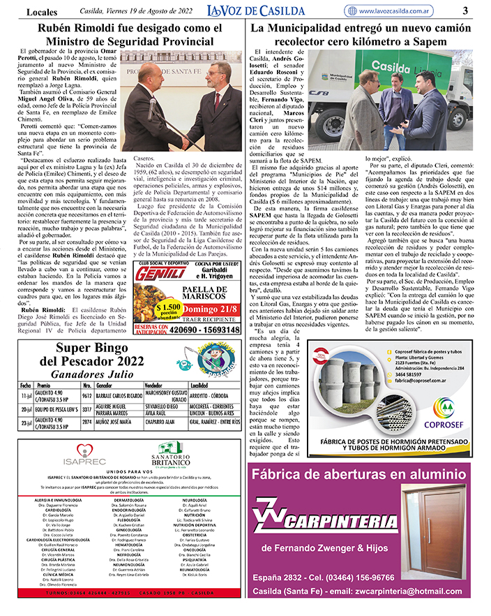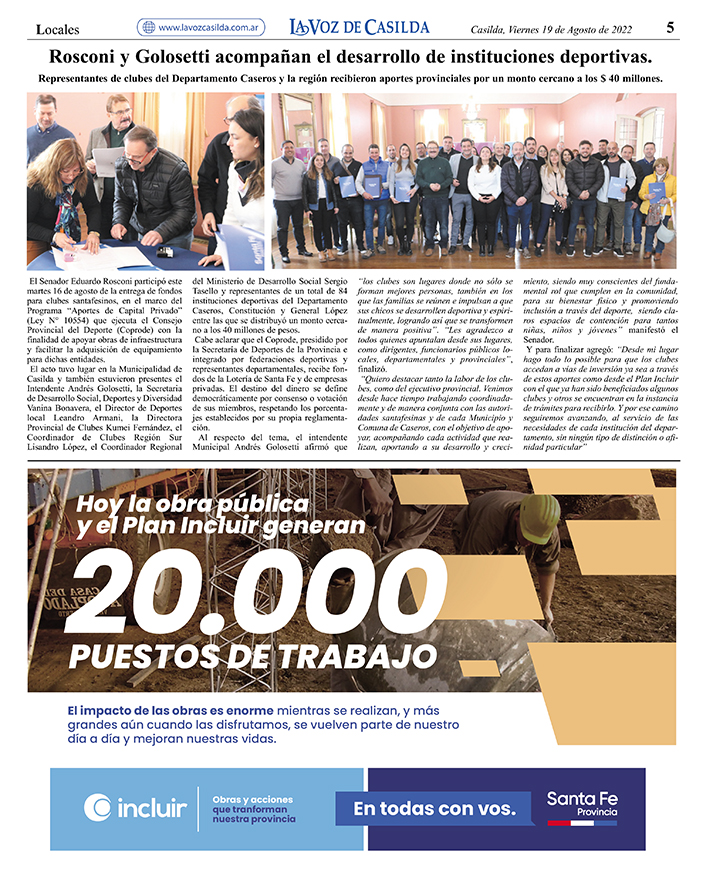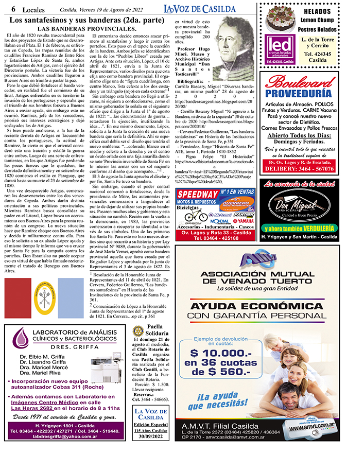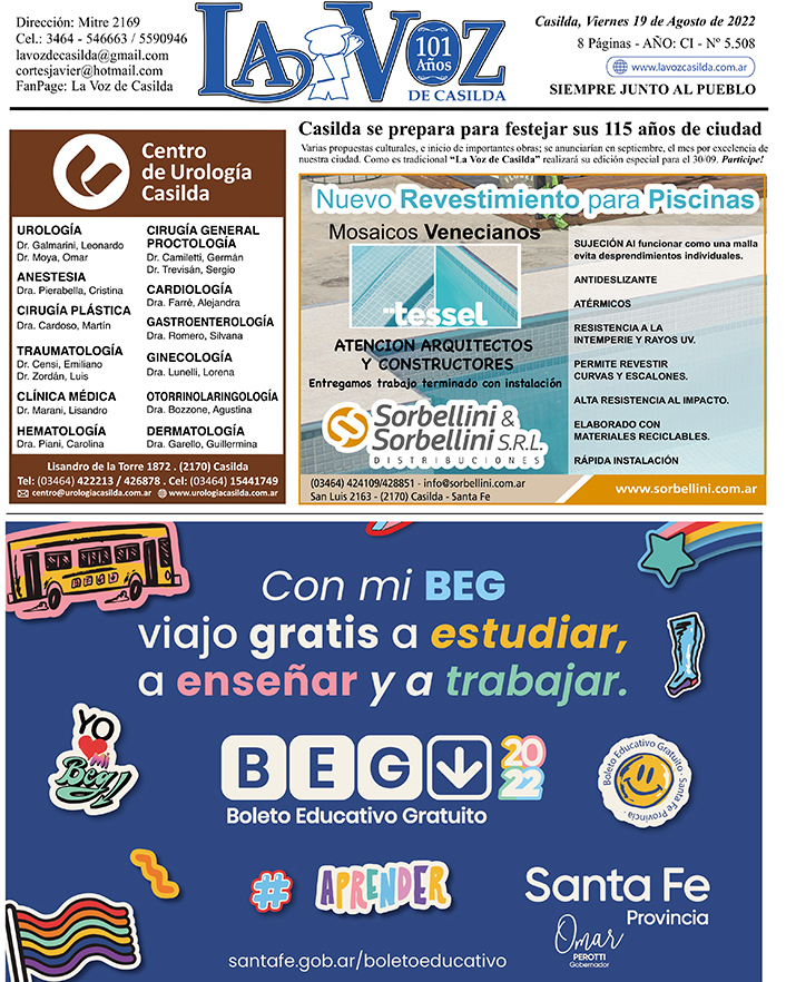 Edición Impresa «La Voz de Casilda»: 19/08/2022