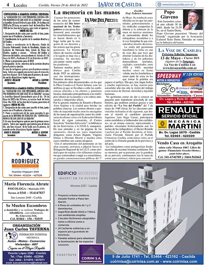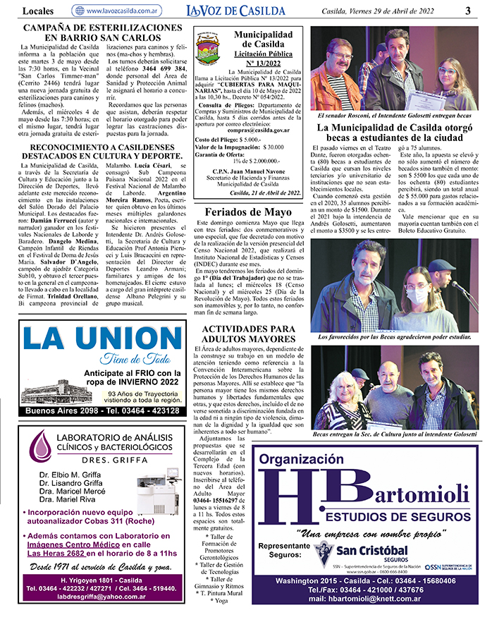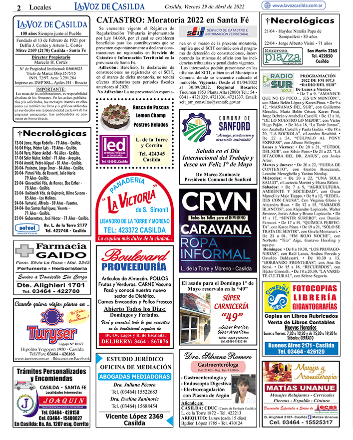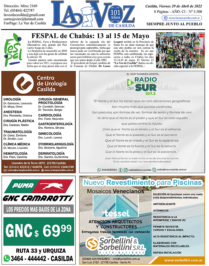 Edición Impresa «La Voz de Casilda»: 29/04/2022
