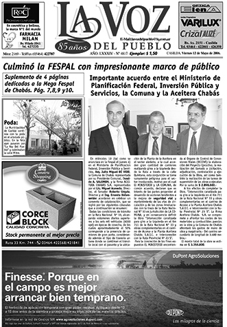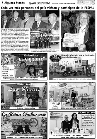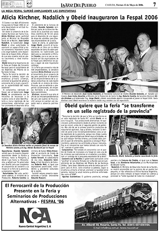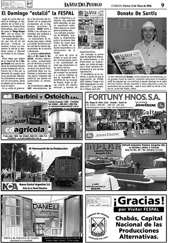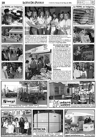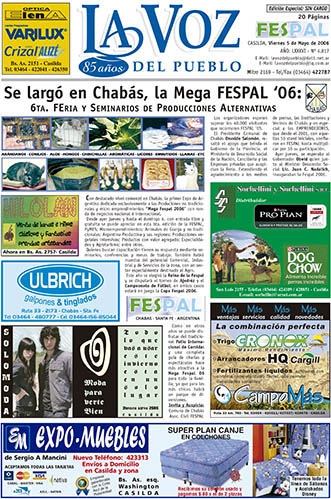 La Voz del Pueblo imprime el viernes 5 de mayo de 2006 una edición especial de 20 páginas con 4 a color dedicadas a la 6ta. Feria y Seminario de Producciones Alternativas y el viernes 12 del 2006 publica un suplemento de 4 páginas dedicadas a la Fespal, acá mostramos las dos tapas (pre y post Fespal) y las páginas dicho suplemento de La Voz Del Pueblo, hoy: La Voz de Casilda.