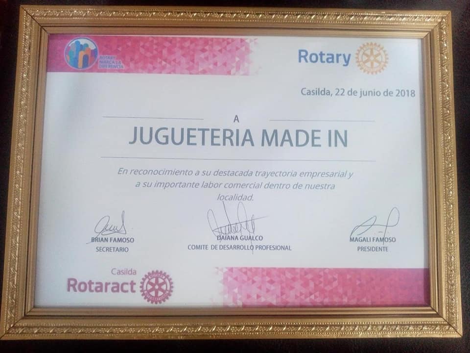 Anoche en las instalaciones del Centro Económico del Departamento Caseros, el Rotaract Club Casilda distinguió a Juguetería Made In por su destacada trayectoria empresarial e importante labor comercial.