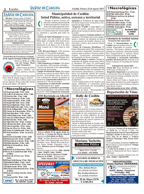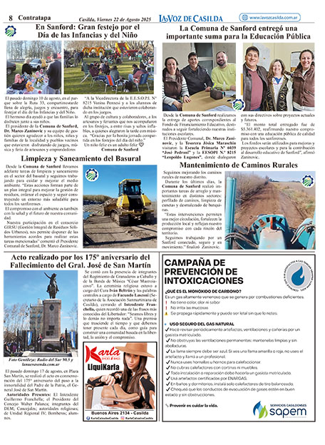 La Voz de Casilda: Edición Impresa del 22/08/2025
