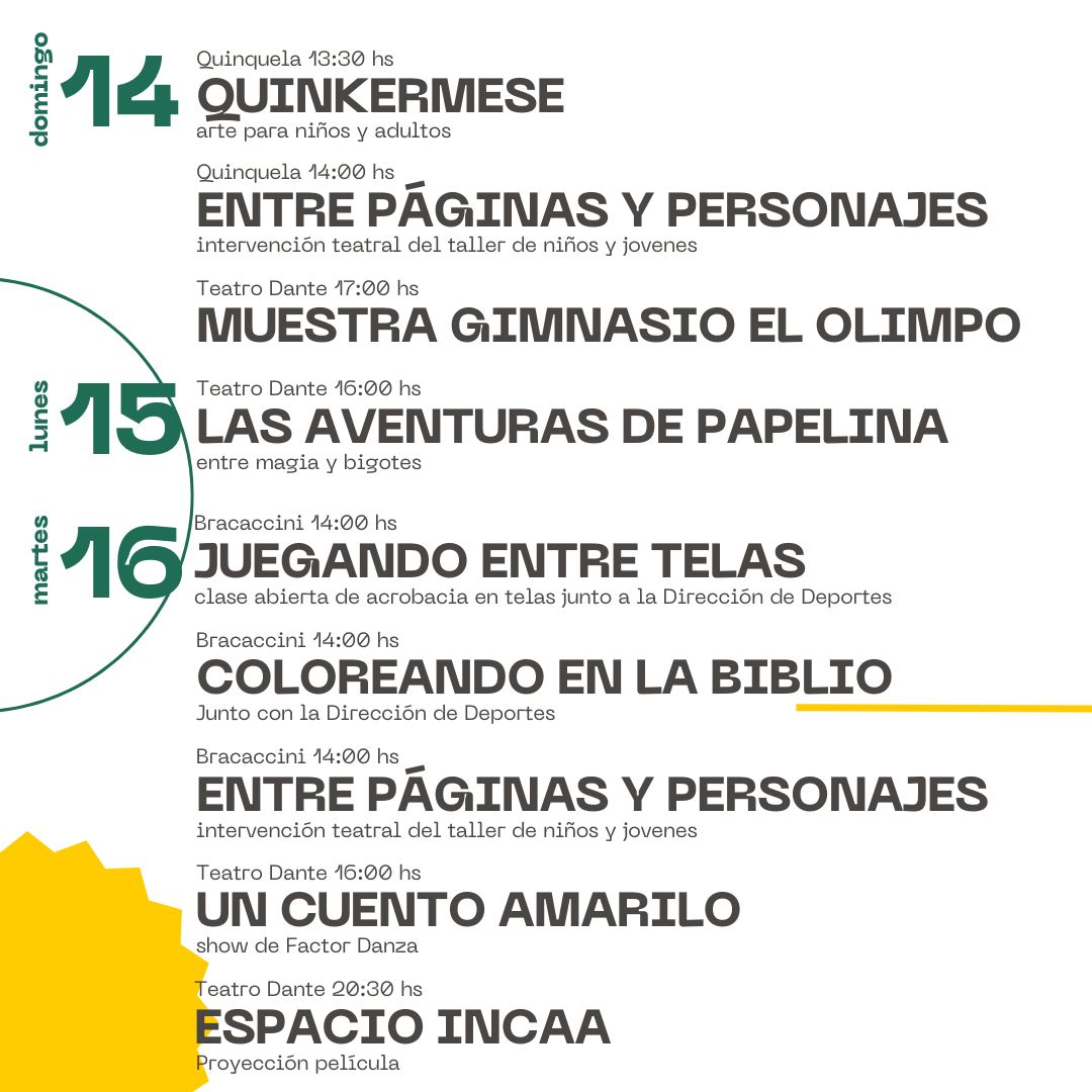 18.30 a 20.30hs Teatro Dante – Taller de Teatro Municipal (niños de 12 a 18 años), coordinado por Yanina Dituro.