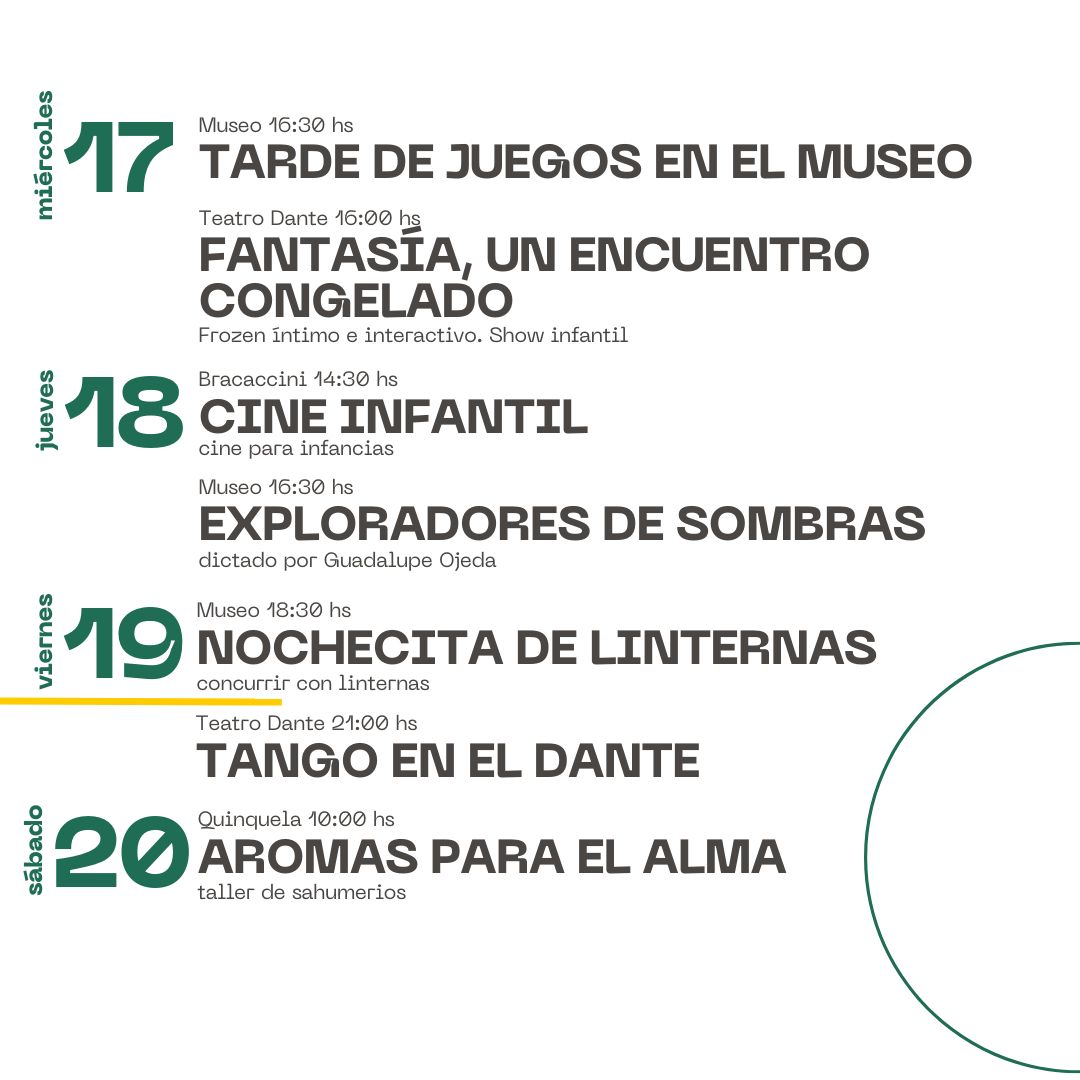 16.30 a 18.30hs Museo- “Tardes de Juegos en el Museo” a cargo del Prof. Juan José Tochetto y Prof Vanina Diaz
