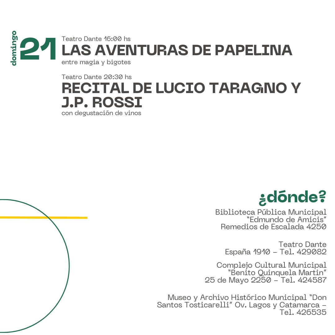 20.30hs Teatro Dante- Espectáculo de Lucio Taragno- (Organiza Leandro Reschini).